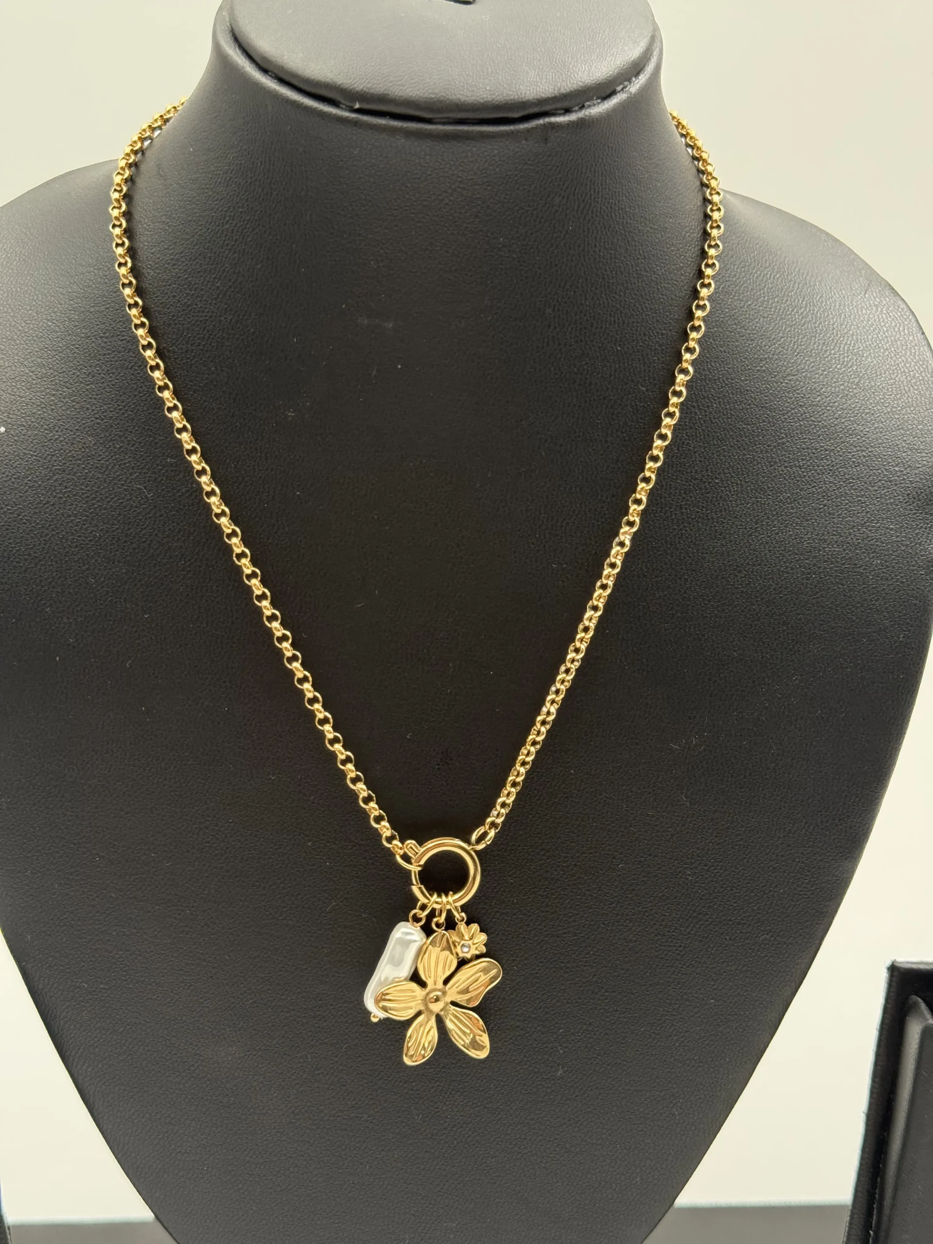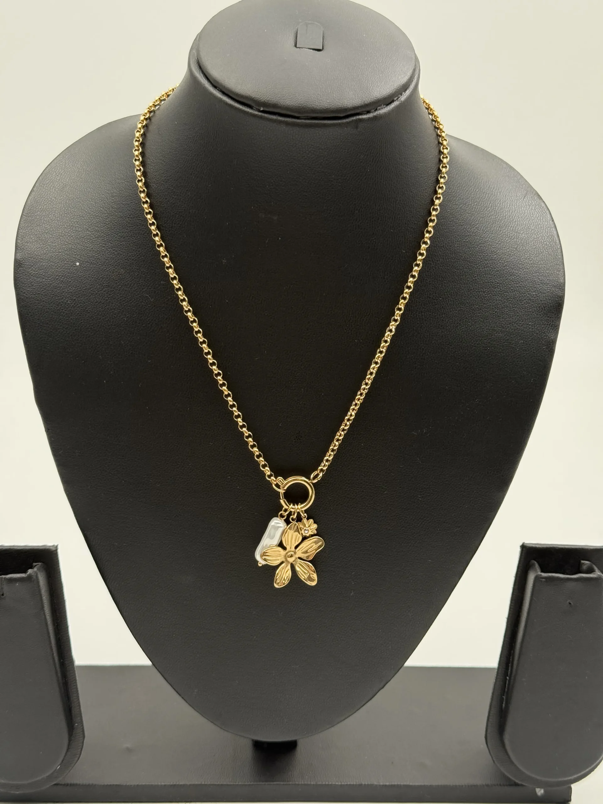 A delicate stainless steel charm neckpiece with a floral blossom pendant. Anti-tarnish | Sweat & Water Proof for lasting shine and durability.