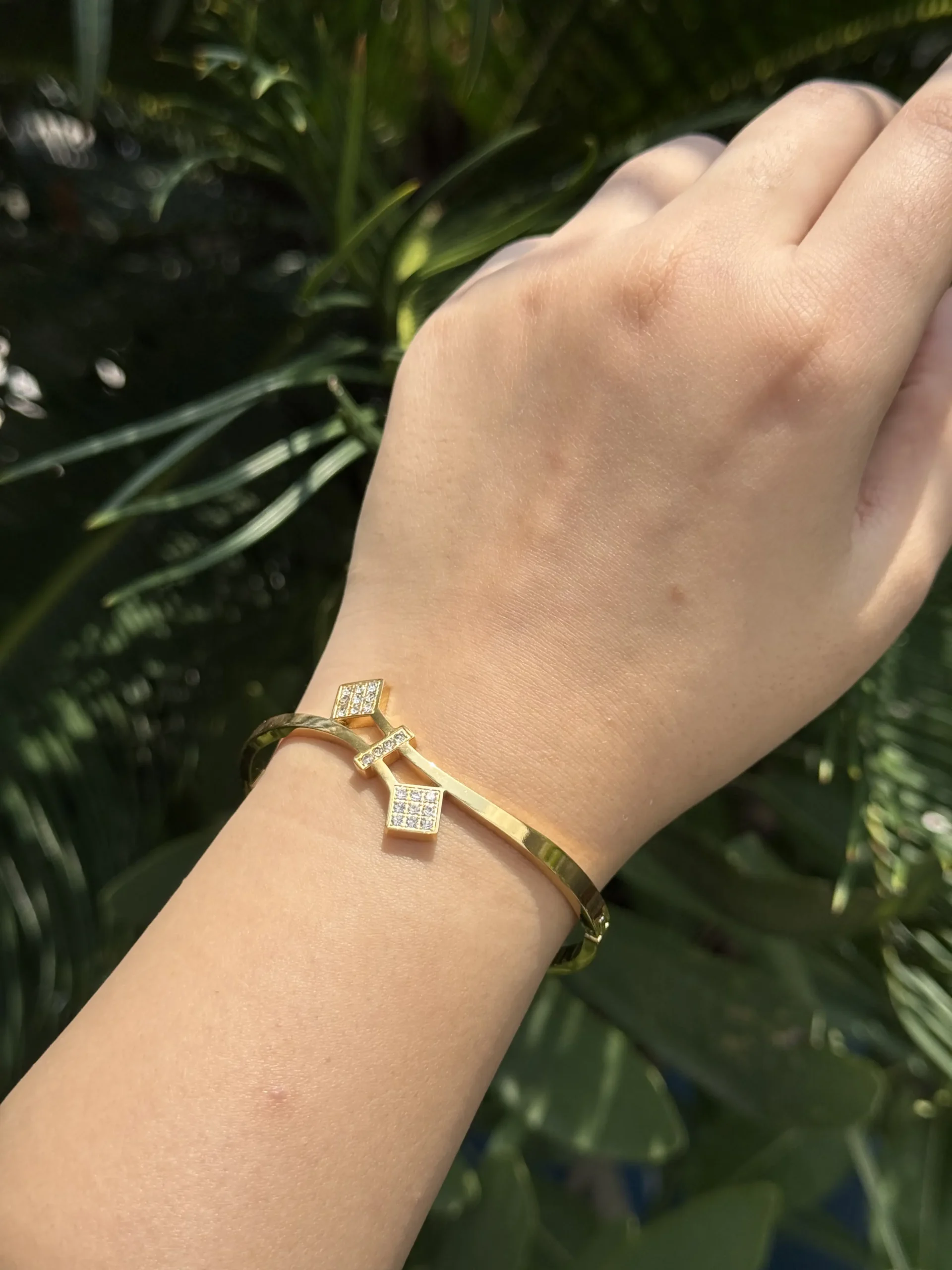 A sleek stainless steel bracelet accented with dazzling diamond-cut stones. Anti-tarnish | Sweat & Water Proof for long-lasting brilliance.