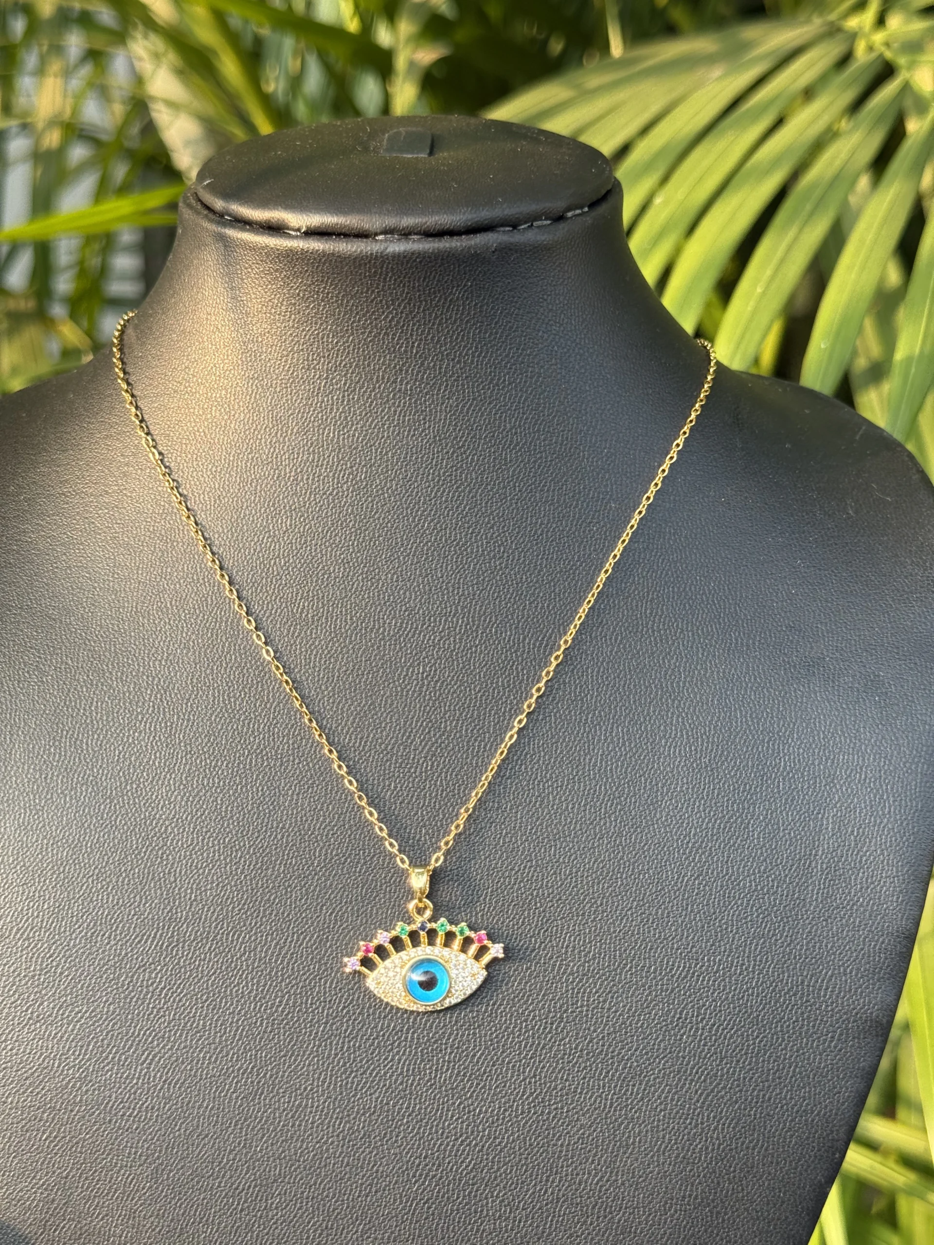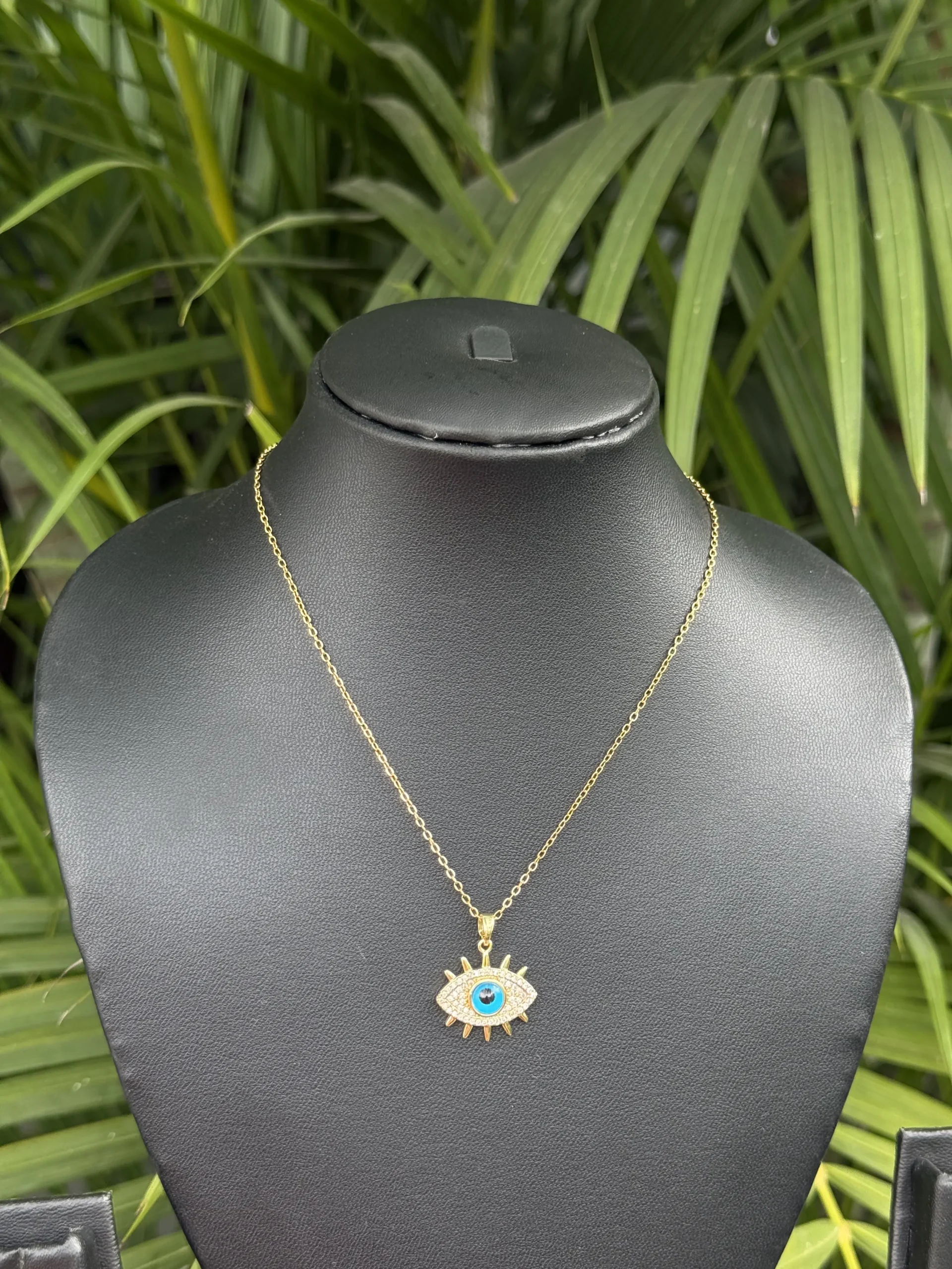 A sleek stainless steel neckpiece featuring a protective Evil Eye pendant. Anti-tarnish | Sweat & Water Proof for lasting shine and strength.