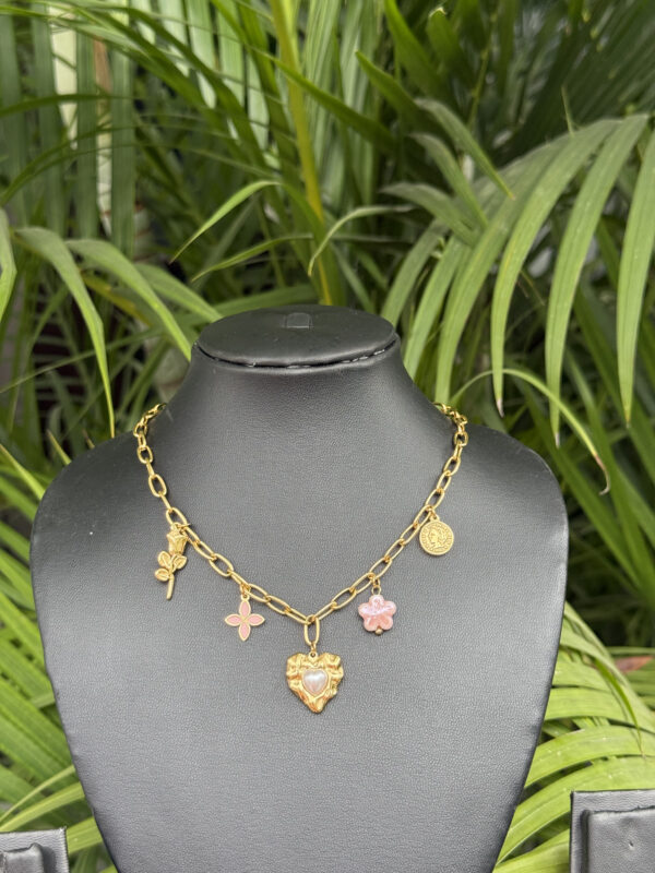 A romantic stainless steel charm neckpiece adorned with a lustrous pearl and heart pendant. Anti-tarnish | Sweat & Water Proof for lasting brilliance.