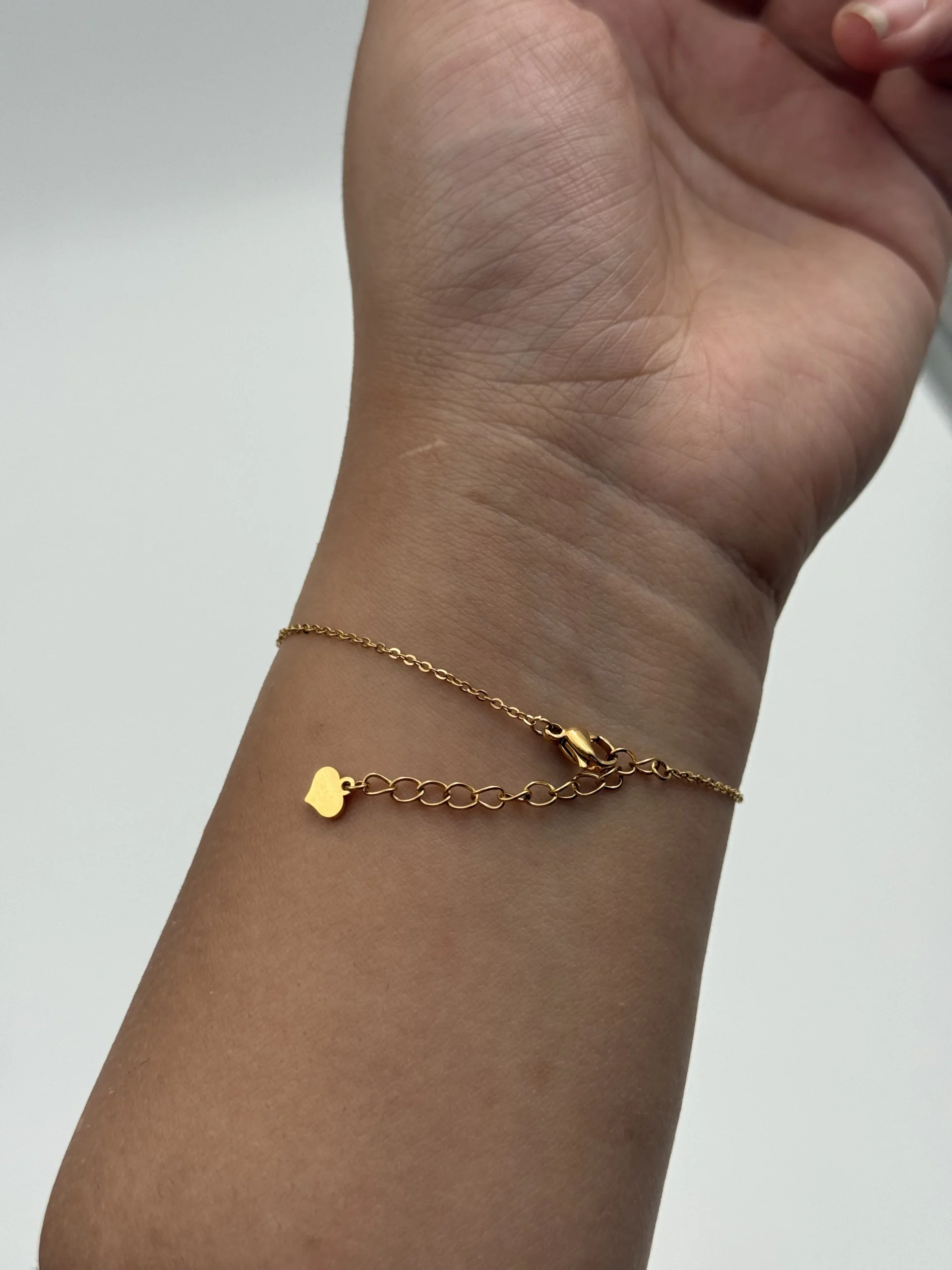 A romantic stainless steel bracelet adorned with dainty heart and stud details. Anti-tarnish | Sweat & Water Proof for lasting shine and durability.