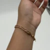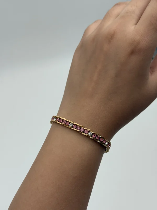 A chic stainless steel bracelet accented with soft pink studs. Anti-tarnish | Sweat & Water Proof for long-lasting shine and durability.