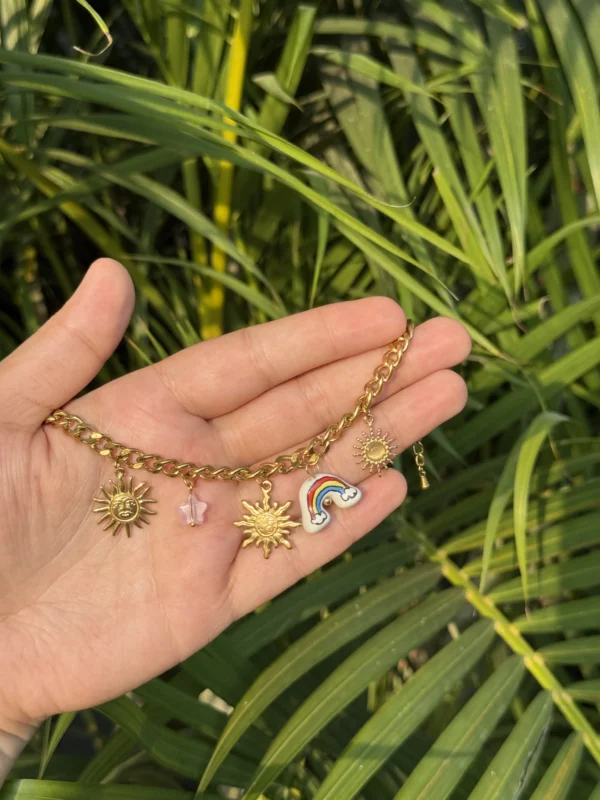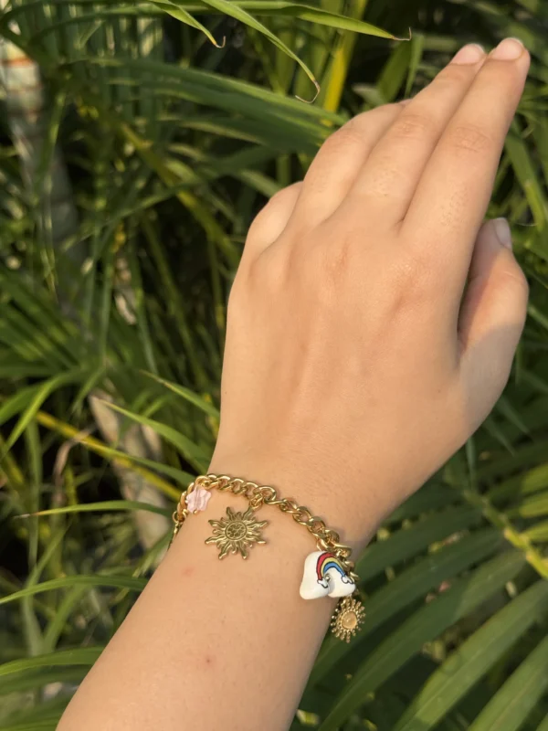 A vibrant stainless steel charm bracelet with multicolour accents. Anti-tarnish | Sweat & Water Proof for lasting shine.