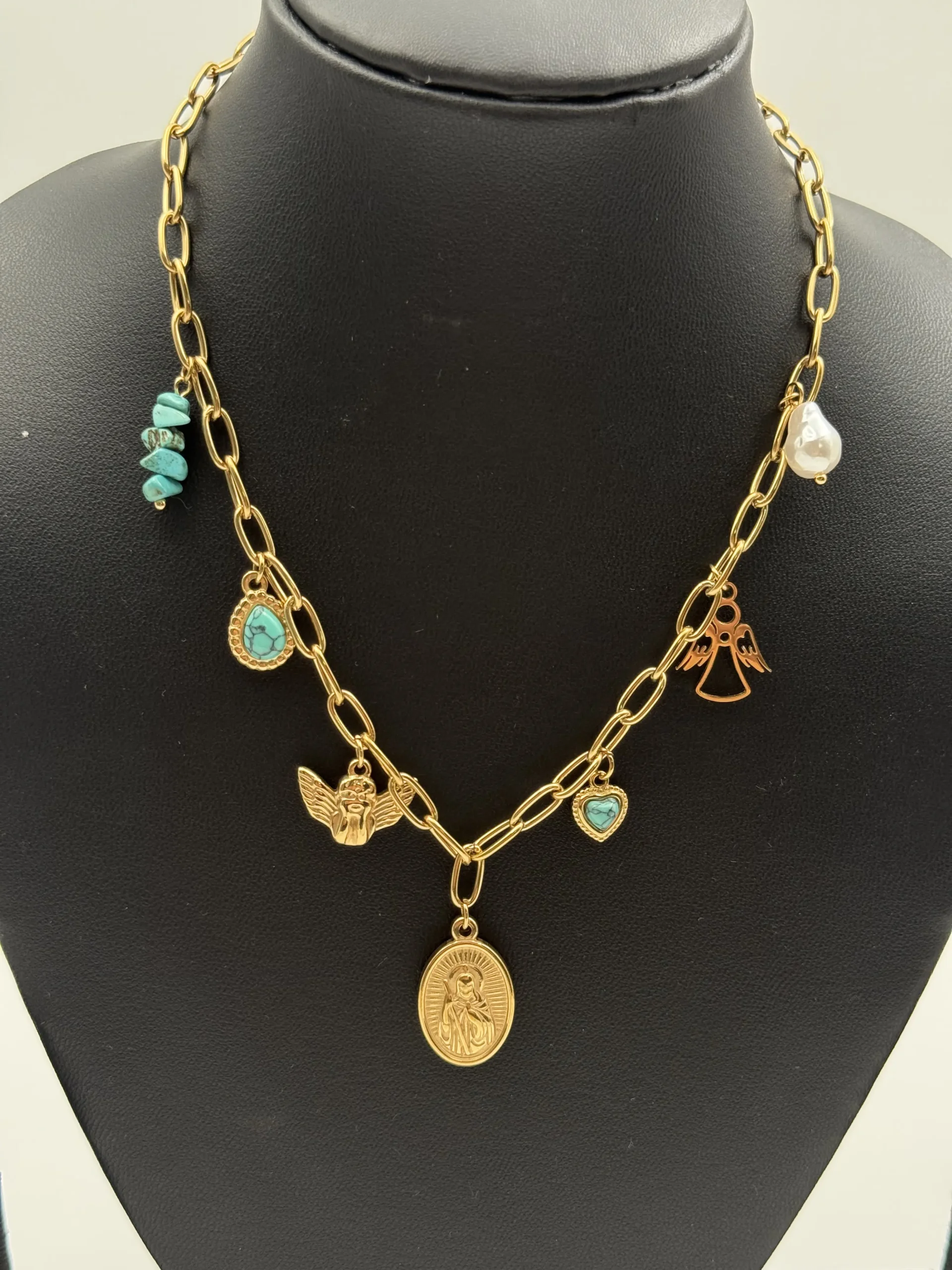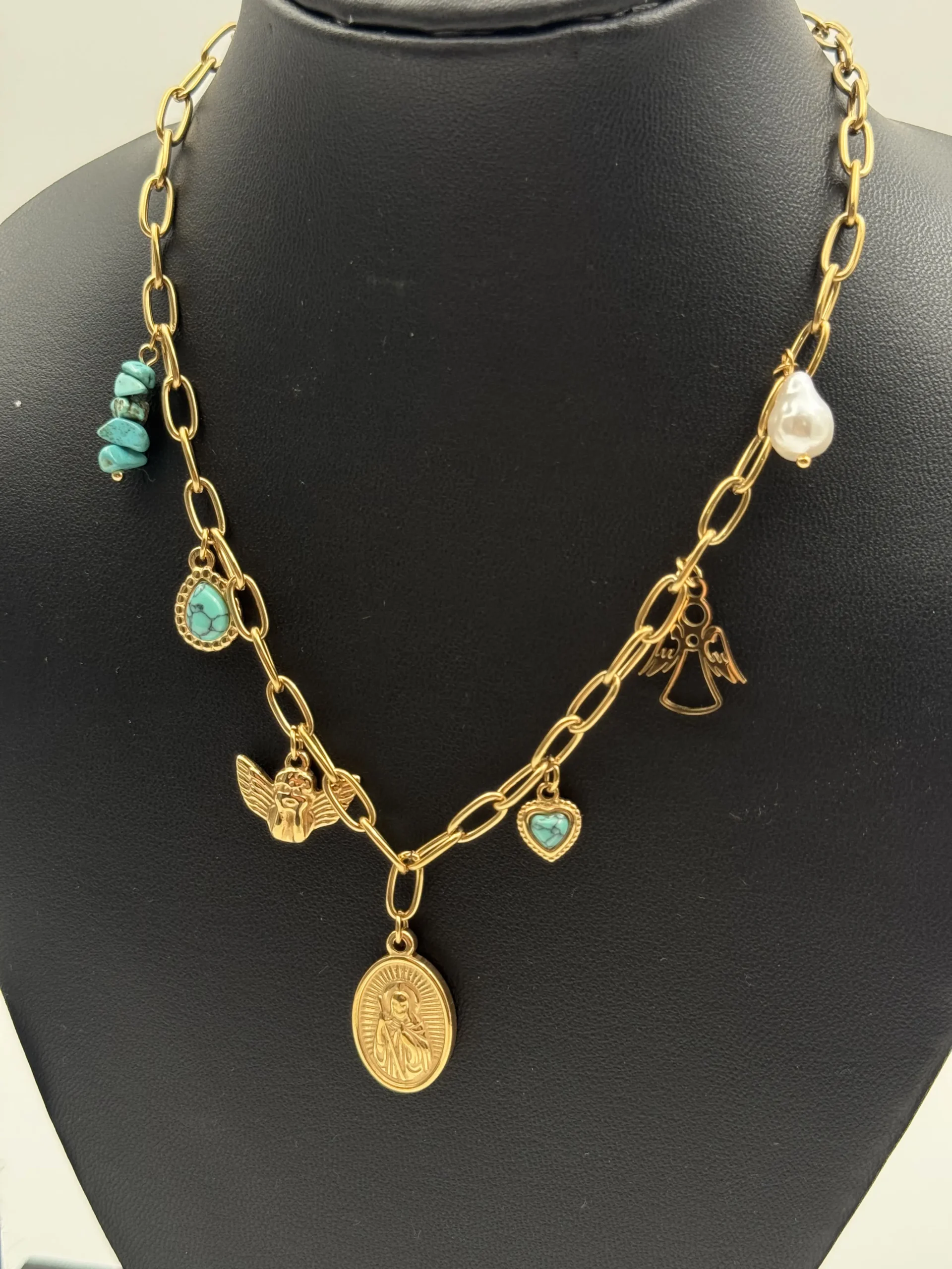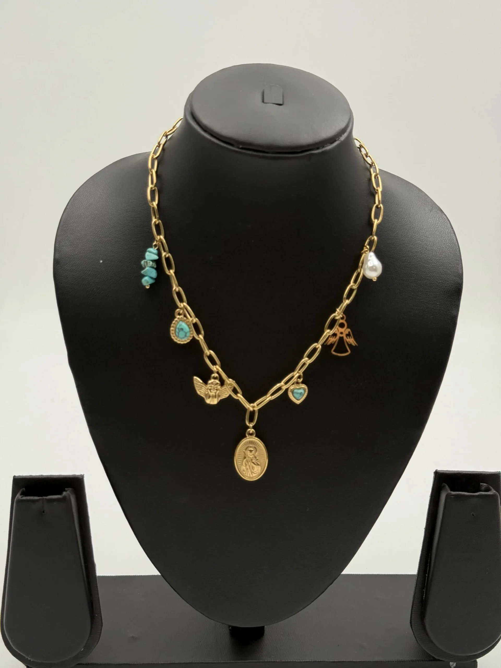 A classic stainless steel charm neckpiece with elegant minimal accents. Anti-tarnish | Sweat & Water Proof for lasting shine and durability.
