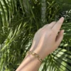 A modern stainless steel bracelet adorned with elegant stud details. Anti-tarnish | Sweat & Water Proof for lasting brilliance and durability.