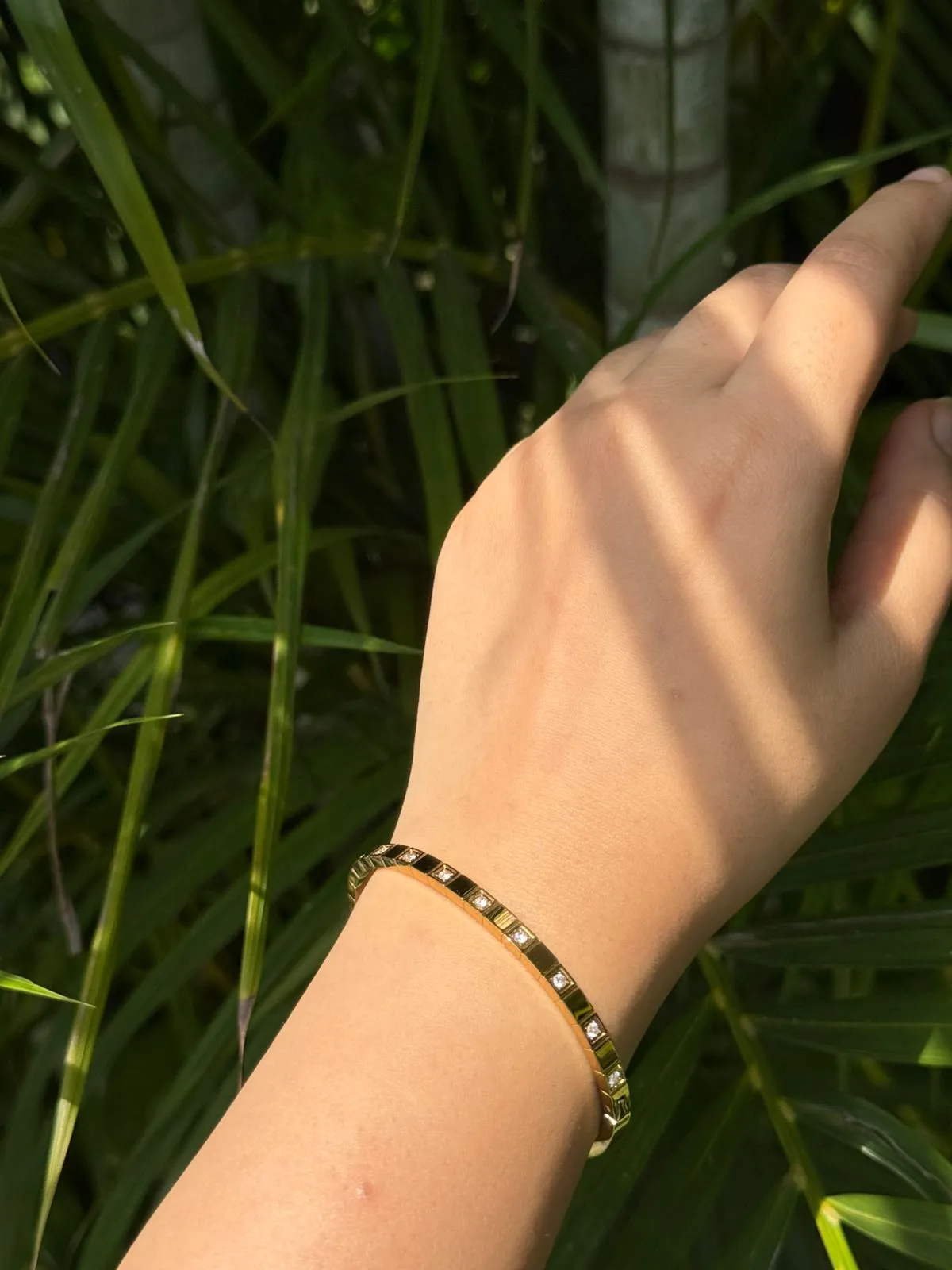 A sleek stainless steel bracelet featuring fine stud details. Anti-tarnish | Sweat & Water Proof for long-lasting shine and durability.