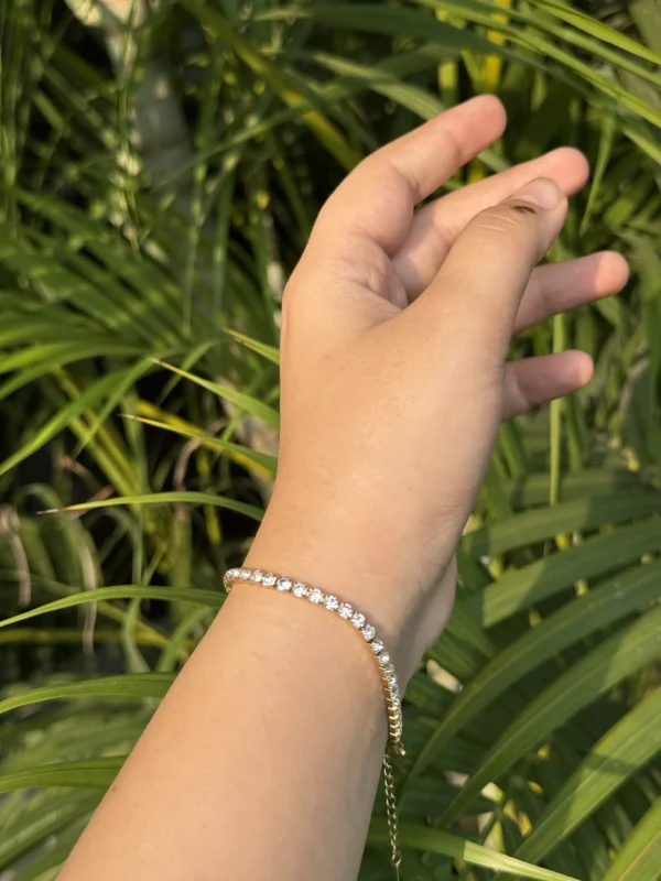 A chic stainless steel bracelet detailed with fine stud accents. Anti-tarnish | Sweat & Water Proof for long-lasting shine and durability.